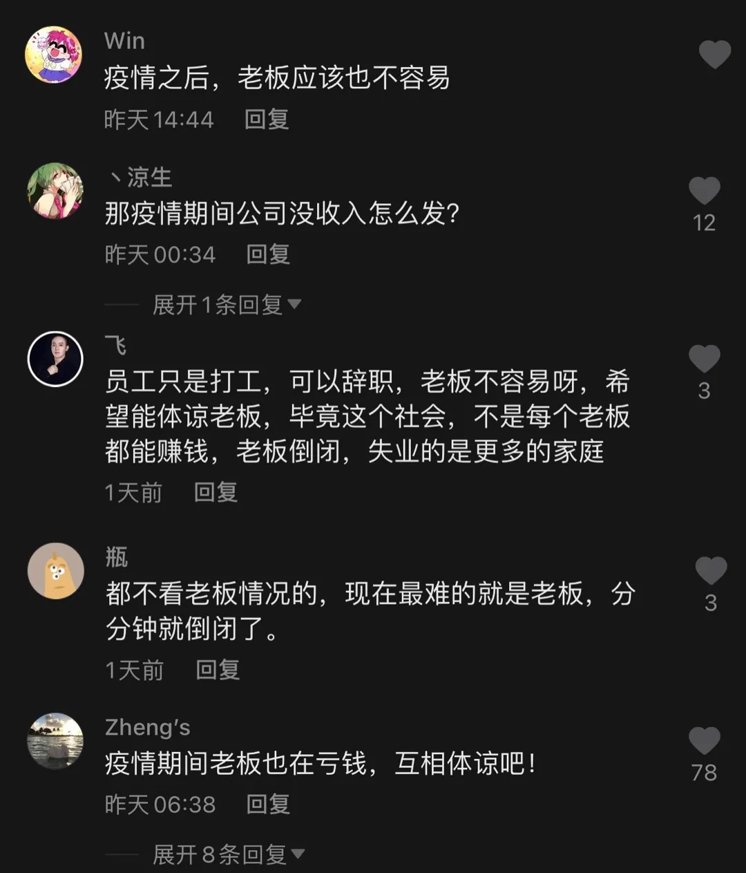 有許多網友認為員工與老板之間應相互體諒:
